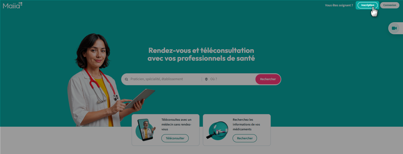 1. Accédez au site www.maiia.com puis cliquez sur "Inscription" :
