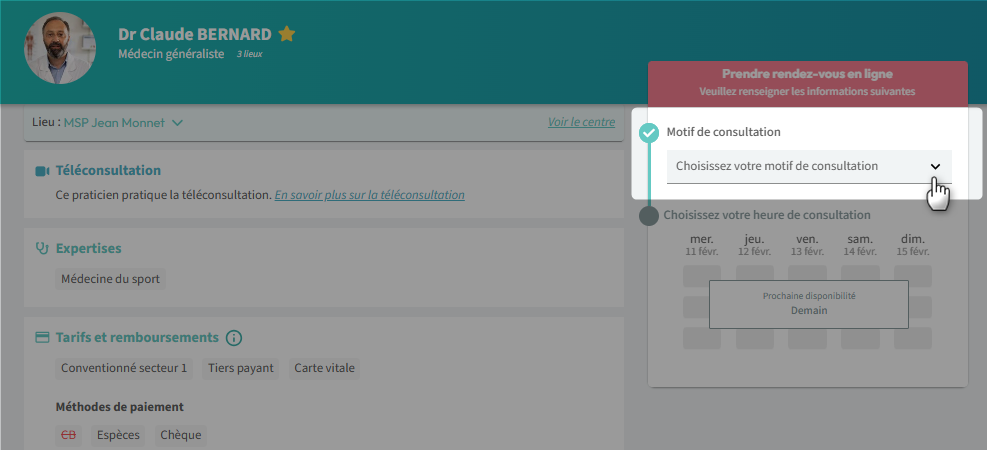 2. Sélectionnez le motif de consultation :