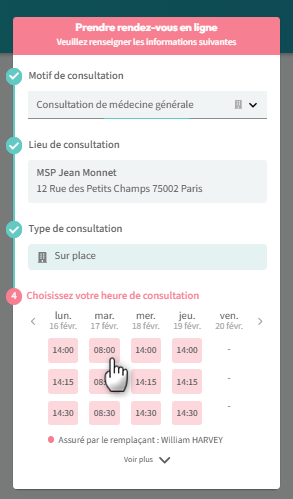 Une fois votre compte patient créé, vous pouvez prendre rendez-vous avec votre professionnel de santé.