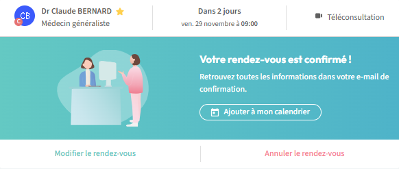 7. Le rendez-vous de téléconsultation est confirmé :