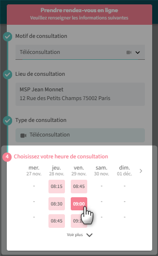 3. Choisissez la date et l'heure de la téléconsultation :