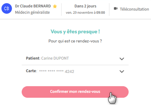 5. Choisissez le nom du patient (votre nom ou le nom d'un proche), puis sélectionnez votre carte bancaire :