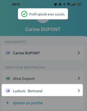 Vous avez la possibilité d'ajouter un ou plusieurs proches sur votre propre compte patient principal.