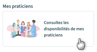 - Si vous avez ajouter le praticien en favori ou en tant que médecin traitent vous pouvez le retrouver facilement dans l'onglet "Mes praticiens" disponible sur la page d'accueil :