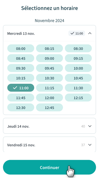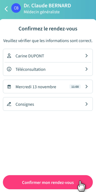 Une fois le rendez-vous validé, vous recevez un mail de confirmation, un mail et un sms de rappel quelques heures avant le rendez-vous.