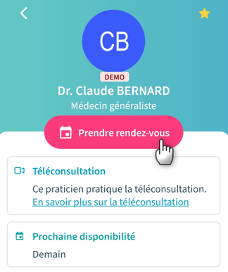 2. Depuis le profil du praticien, cliquez sur le bouton "Prendre rendez-vous" :