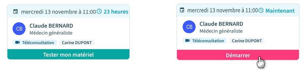 Le bouton "Démarrer" apparait 15min avant le RDV.