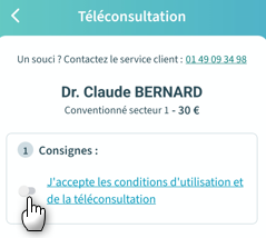 Rappel : La carte bancaire est nécessaire pour démarrer une téléconsultation.