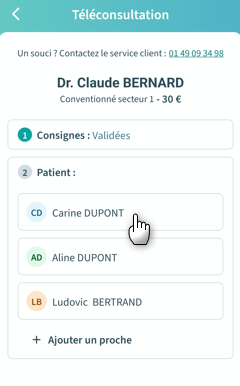 2. Patient : Choisissez le nom du patient (votre nom ou celui d'un proche)