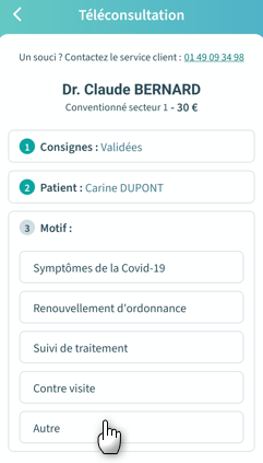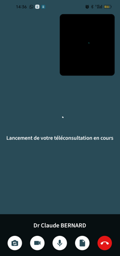 - Lorsque votre praticien accepte la téléconsultation, il est alors visible à l'écran. La téléconsultation commence