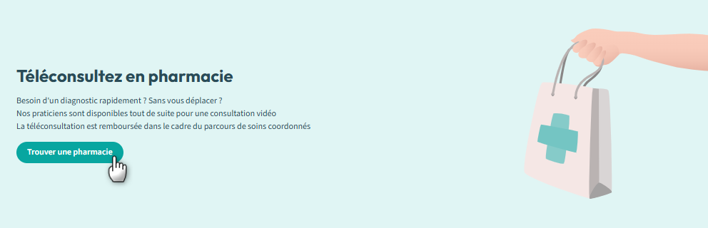 Vous (ou votre proche) avez la possibilité de réaliser une téléconsultation directement depuis une pharmacie avec votre médecin.