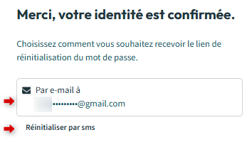 4. Choisissez comment vous souhaitez recevoir le lien de réinitialisation du mot de passe (par email ou sms) :