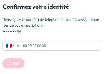 3. Saisissez votre numéro de portable, puis validez :
